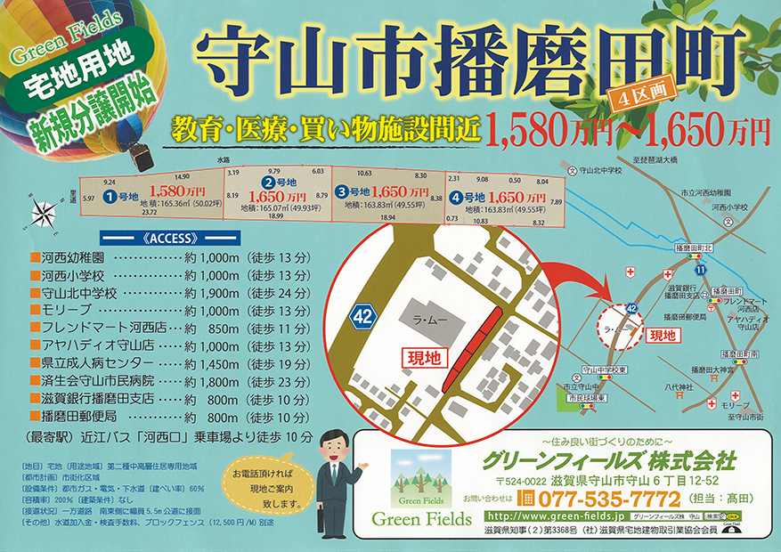 〈物件所在〉滋賀県守山市播磨田 〈販売開始〉平成30年6月 完売済み