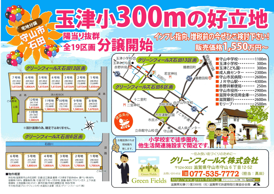 〈物件所在〉滋賀県守山市石田 〈販売開始〉平成26年10月 完売済み