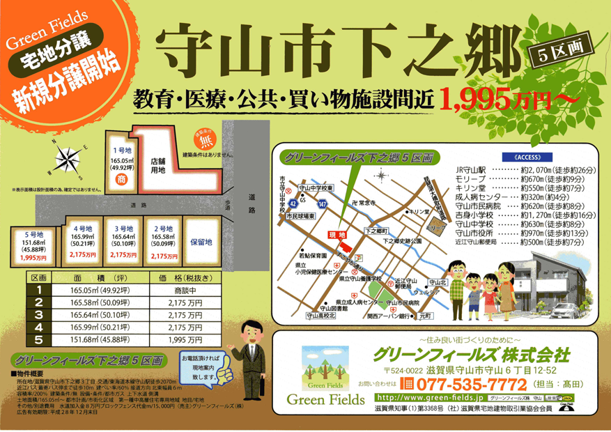〈物件所在〉滋賀県守山市下之郷 〈販売開始〉平成28年7月 完売済み
